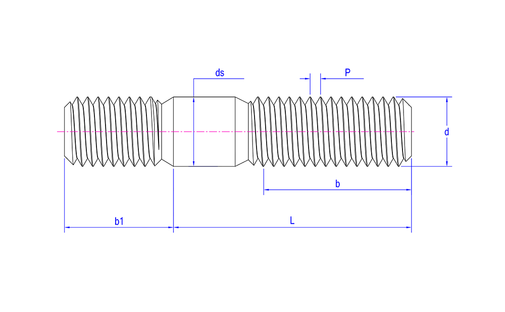 | Fitur Kepala | Bagian berbentuk silinder dengan ulir di kedua ujungnya, biasanya terbuat dari logam, dengan bagian tak berulir di tengahnya. |