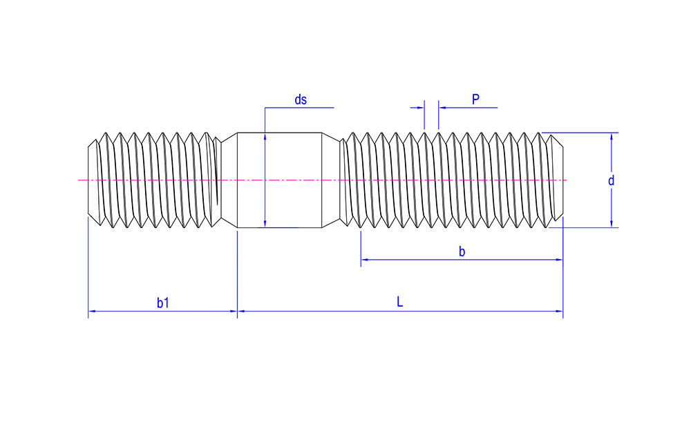 | Karakteristik Penampilan | Bagian berbentuk silinder dengan ulir di kedua ujungnya, biasanya terbuat dari logam, dengan bagian tak berulir di tengahnya |