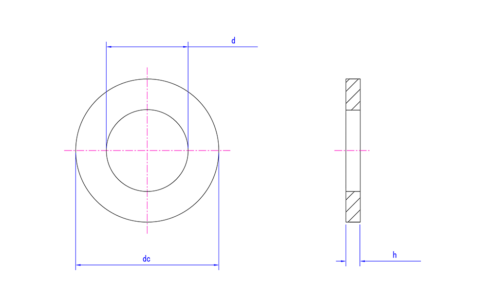 | Karakteristik Penampilan | Mesin cuci bulat datar, biasanya permukaan logam, desain tipis seragam |