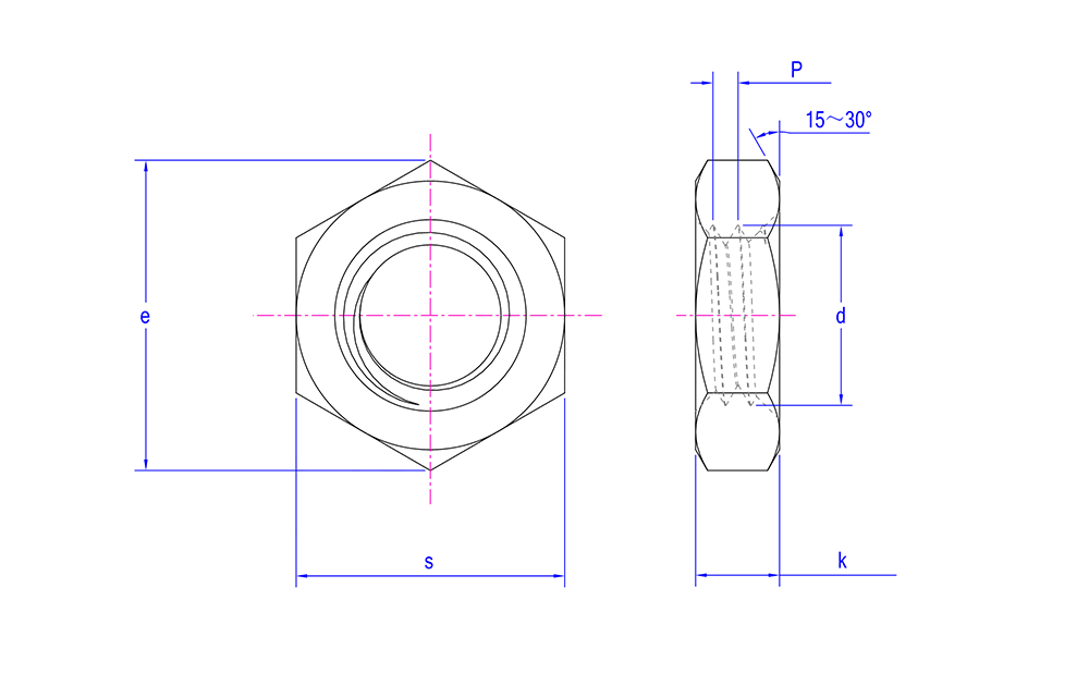 | Karakteristik Penampilan | Bentuk: Heksagonal dengan enam sisi simetris, memudahkan pengencangan dan pelepasan menggunakan kunci pas atau alat lainnya. Desain ini memberikan kenyamanan operasional yang lebih baik di ruang terbatas. Ketebalan: Dibandingkan dengan mur hex standar, mur ini lebih tipis, tergolong mur tipis. Ini relatif ringan dan memakan lebih sedikit ruang. Perawatan Permukaan: Biasanya mempertahankan warna baja tahan karat alami dengan kilau metalik. Itu juga dapat menjalani pasivasi, pemolesan, atau perawatan permukaan lainnya sesuai kebutuhan untuk meningkatkan ketahanan terhadap korosi dan estetika. |