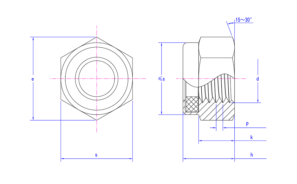 | Keunggulan dan Fitur | Bagian dalam dengan sisipan bahan non-logam, seperti cincin nilon, untuk meningkatkan gesekan dan kekuatan penguncian Digunakan untuk mengencangkan sambungan untuk mencegah kendor dan getaran |